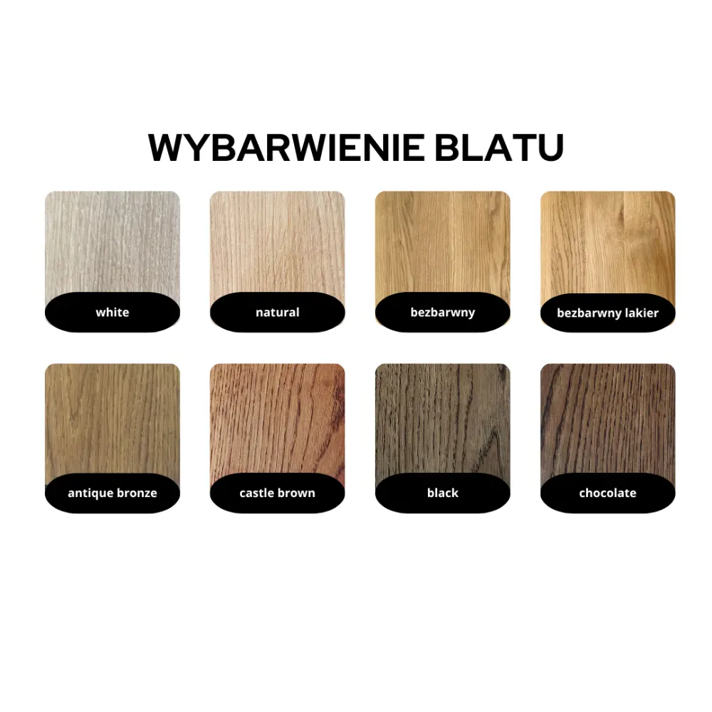 white, natural, bezbarwny, bezbarwny lakier, antique bronze, castle brown, chocolate, black