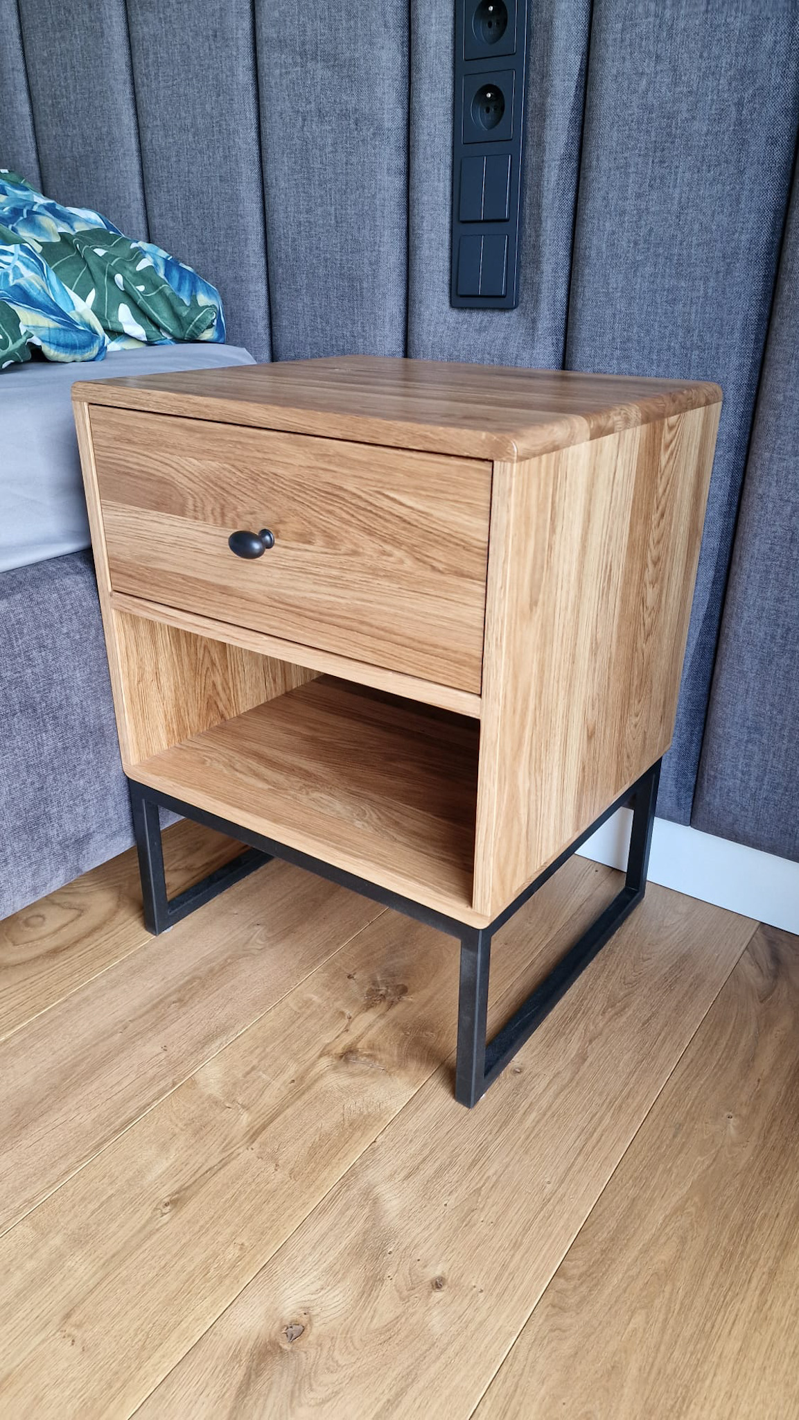 Nasza szafka nocna LARK została wykonana z wysokiej jakości drewna dębowego, co gwarantuje trwałość na lata. Jej prosty, a zarazem elegancki design doskonale komponuje się z różnymi stylami wnętrzarskimi. Zaprojektowaliśmy ją tak, aby była jak najbardziej wygodna i praktyczna. Dzięki zamykanej szufladzie i otwartej półce szafka nocna zapewnia odpowiednią przestrzeń do przechowywania książek, telefonu, czy innych drobiazgów, które chcesz mieć pod ręką w swojej sypialni. To idealne rozwiązanie dla tych, którzy cenią porządek i funkcjonalność.
